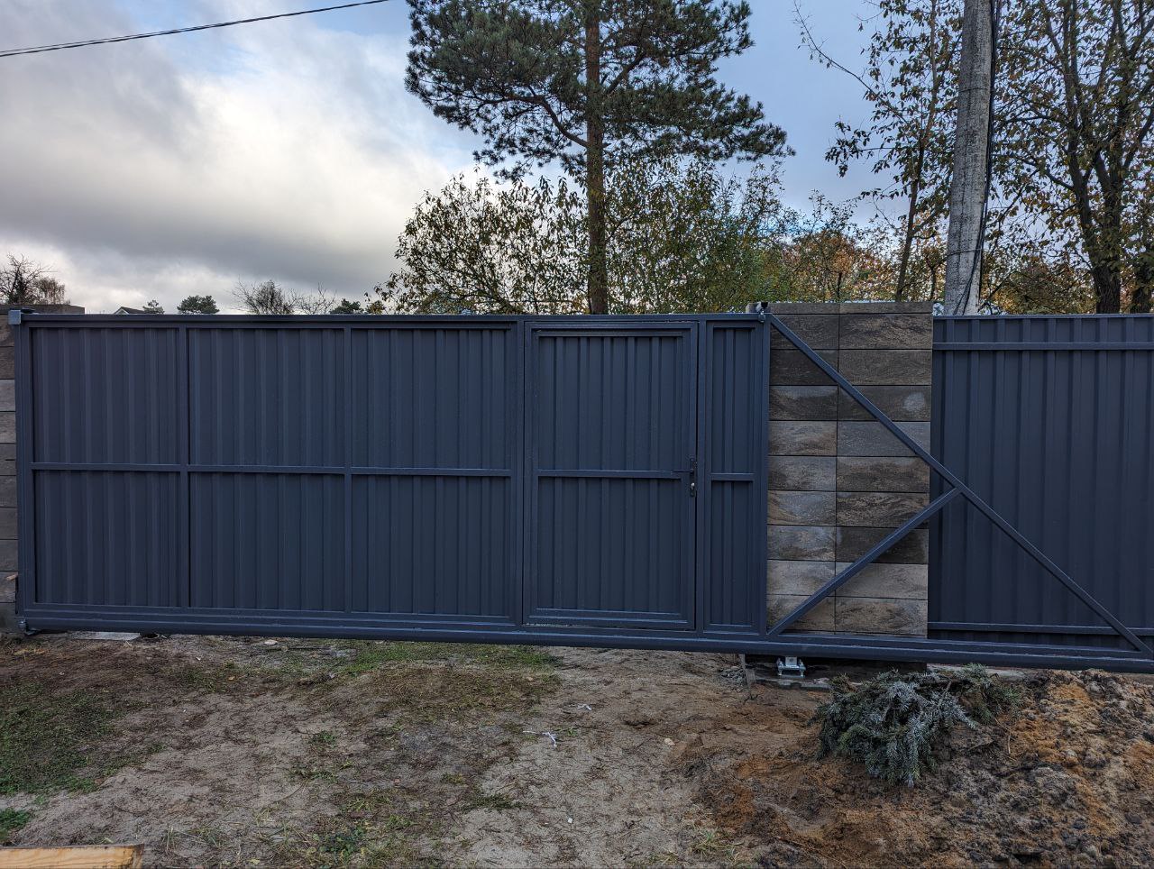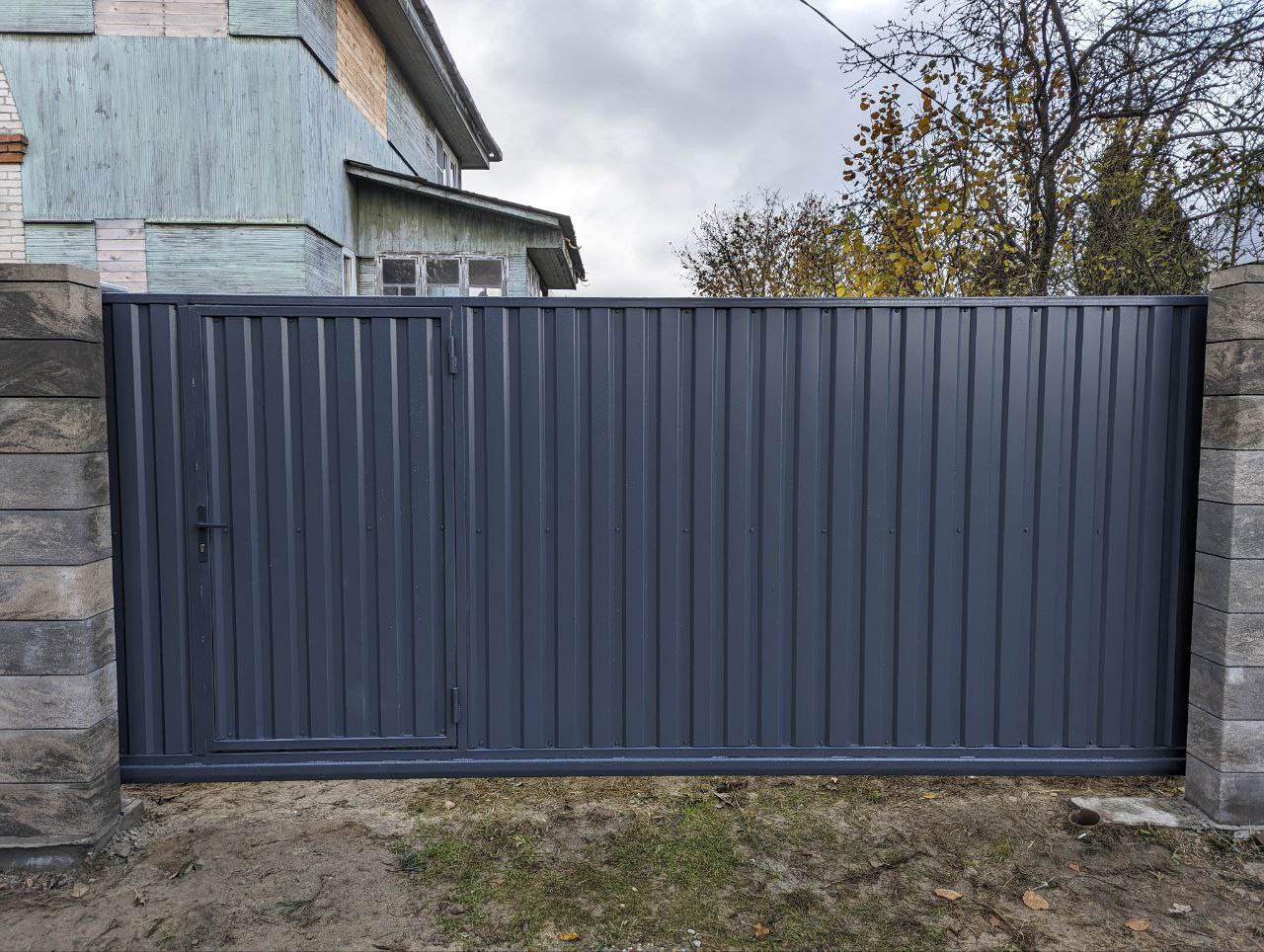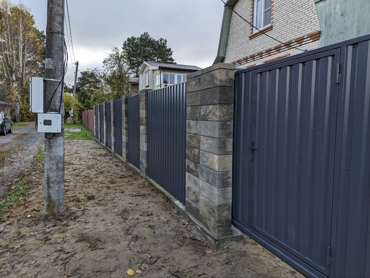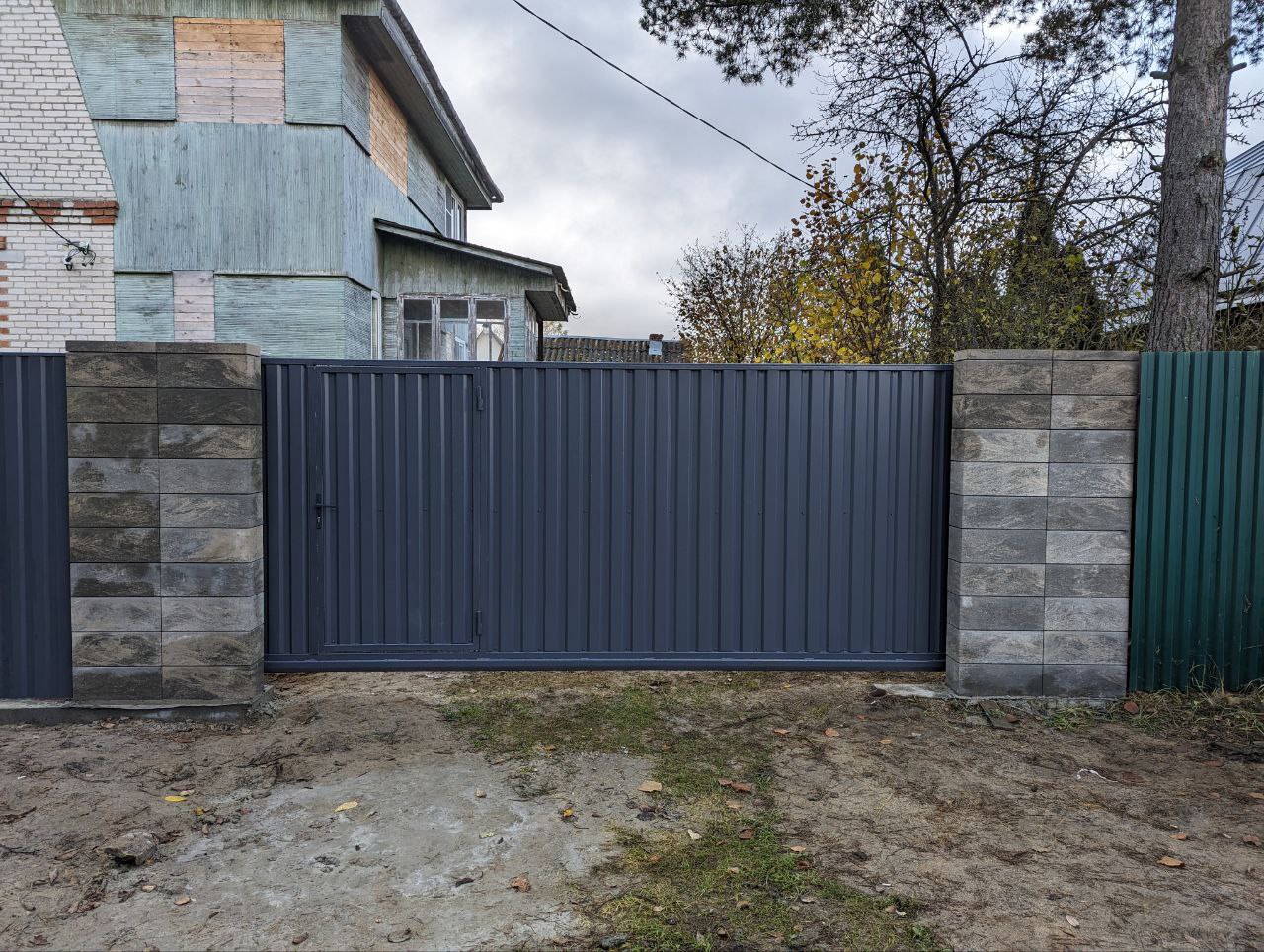 Забор из Блоков Gard с заполнением профнастилом. Откатные ворота со встроенной калиткой