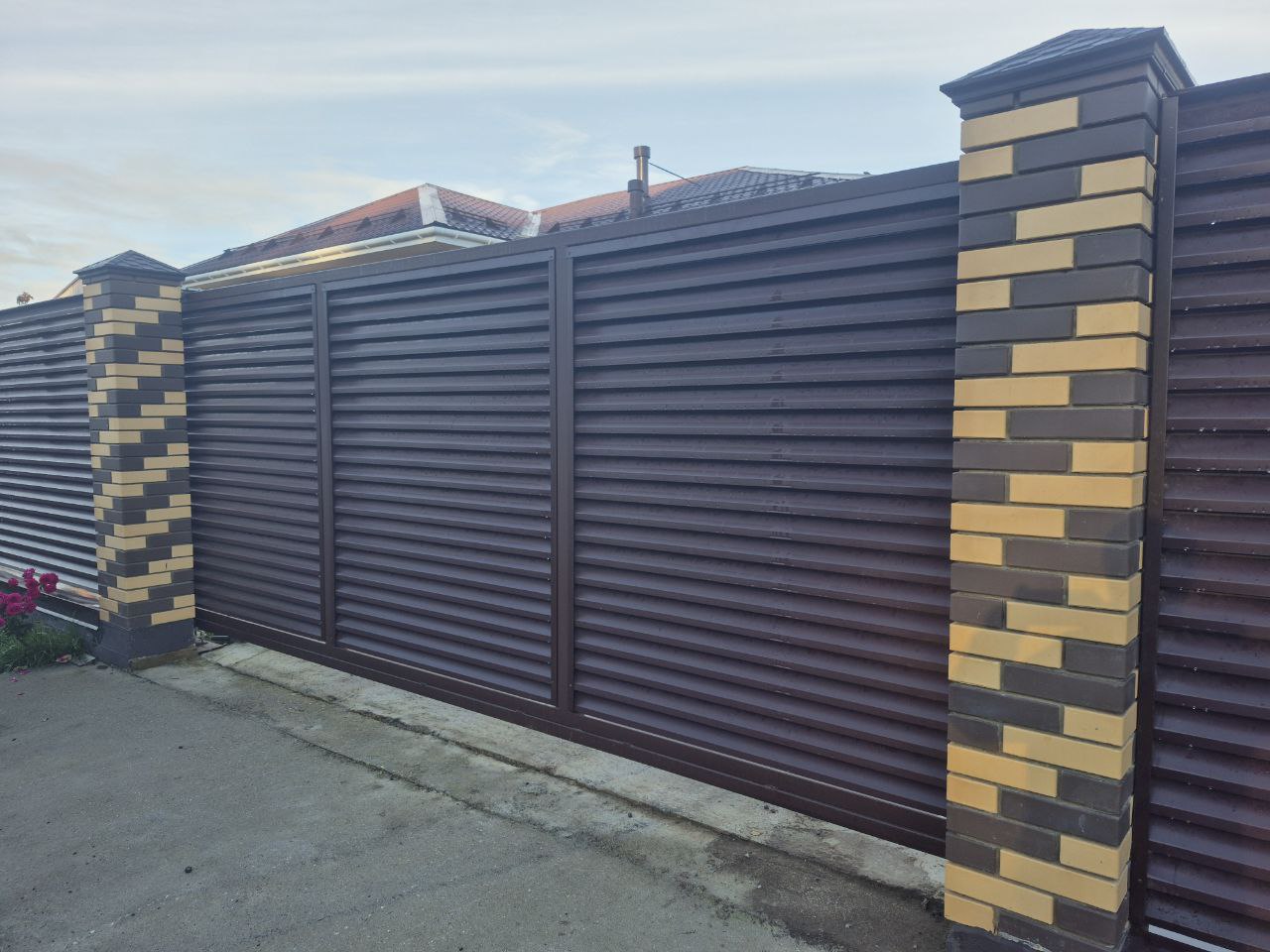 Забор из Блоков Gard с заполнением профнастилом. Откатные ворота со встроенной калиткой